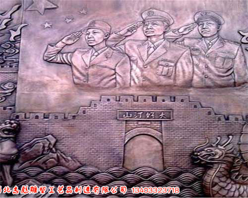 銅浮雕按工藝分為鍛銅浮雕和鑄銅浮雕,按材質(zhì)分為紅銅浮雕、黃銅浮雕、青銅浮雕。紅銅浮雕又稱(chēng)為純銅、紫銅浮雕,利用紫銅的延展性?xún)?yōu)越,采用鍛造工藝進(jìn)行制作。黃銅浮雕多為采用化學(xué)方法制作銅浮雕。銅浮雕圖片和不同的具體銅浮雕如下: