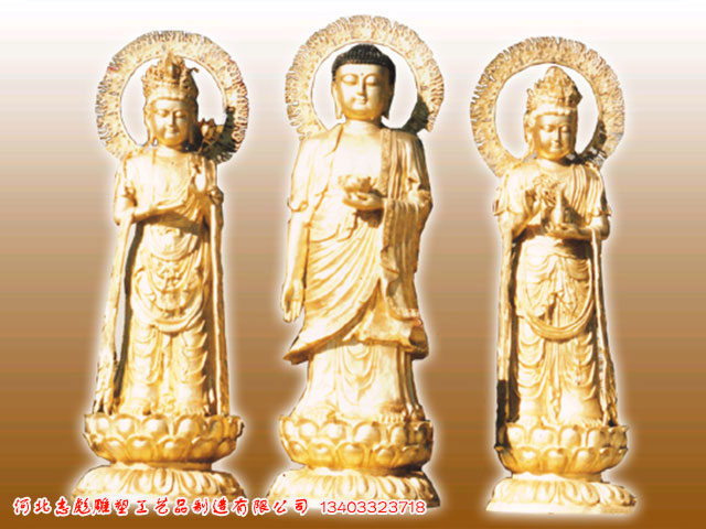 西方三圣像是佛像中的重要佛像雕塑。中央主尊為阿彌陀佛,左為觀世音菩薩,右為大勢至菩薩,合稱"西方三圣"。志彪銅雕廠提供訂做,歡迎聯(lián)系我們進(jìn)行洽談,網(wǎng)上展示圖片僅供參考,詳細(xì)資料和作品信息請聯(lián)系我們索取。