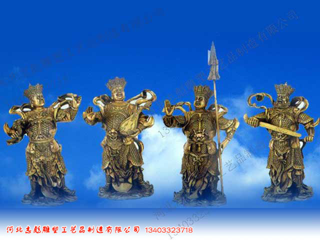 志彪銅雕工藝品廠加工鑄造四大天王銅像,鎏金,貼金銅像等雕塑都是志彪銅雕工藝品廠非常擅長和經(jīng)常加工的,加工電話:13403323718